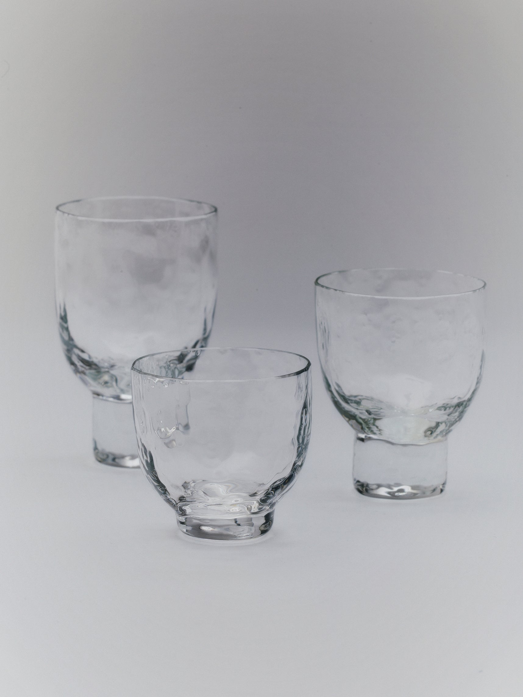 Et legende glas designet af Mia Lagerman, der giver bordet en diskret karakter. Den karakteristiske form ligger behageligt i hånden og tilføjer samtidig en skulpturel detalje til enhver setting.