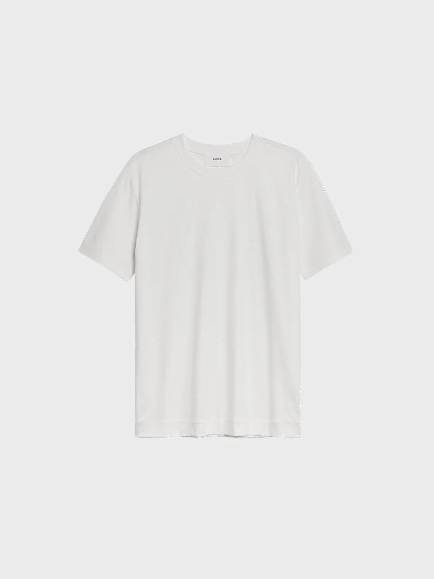 CAES offers a modern update to the classic T-shirt, crafted from 100% organic cotton with a smooth, soft texture. Designed in a boxy fit with a clean crew neckline, short sleeves, and a straight hemline, it's a timeless staple you'll reach for again and again. Perfect paired with tailored trousers for a refined, effortless look.