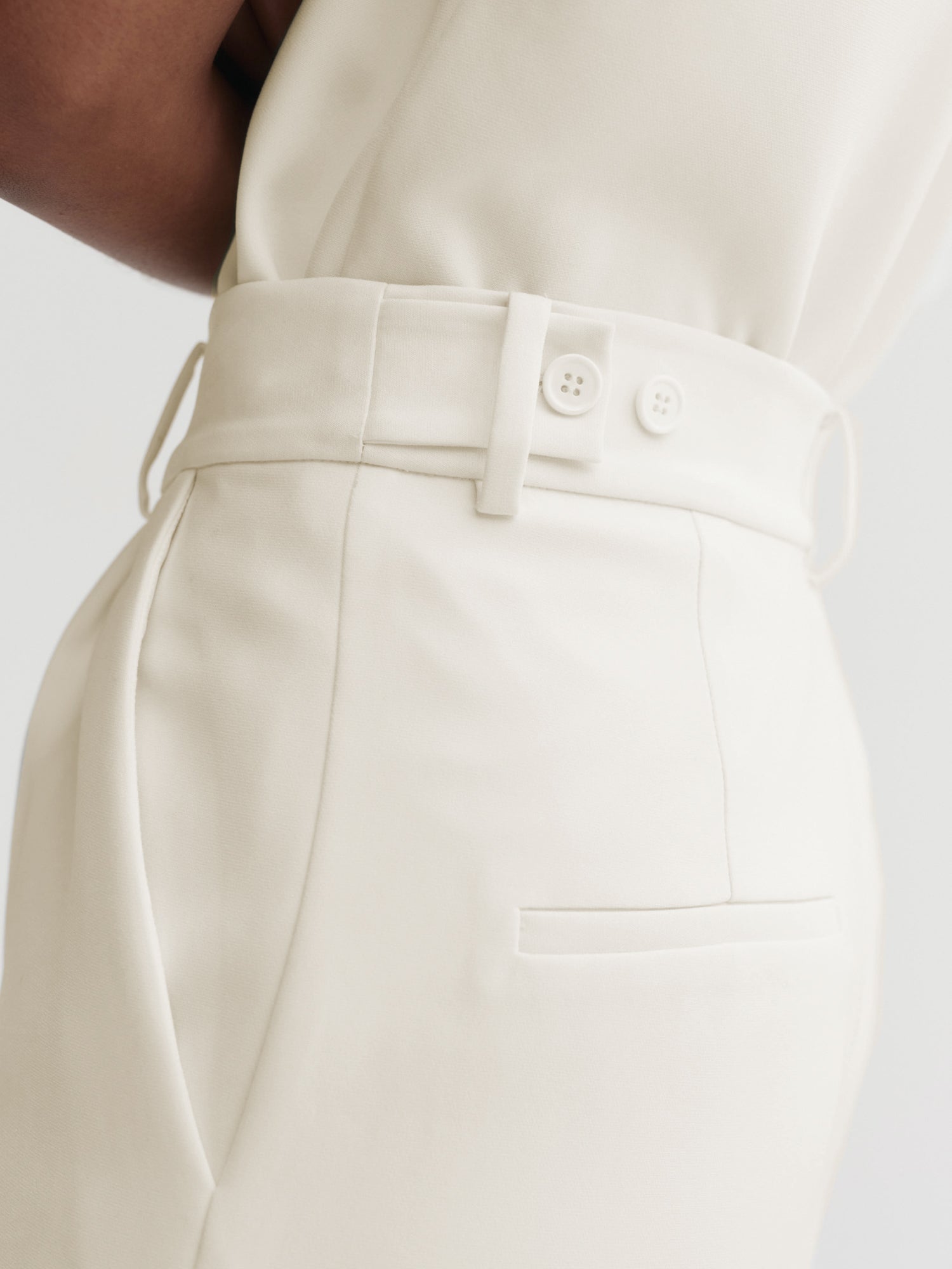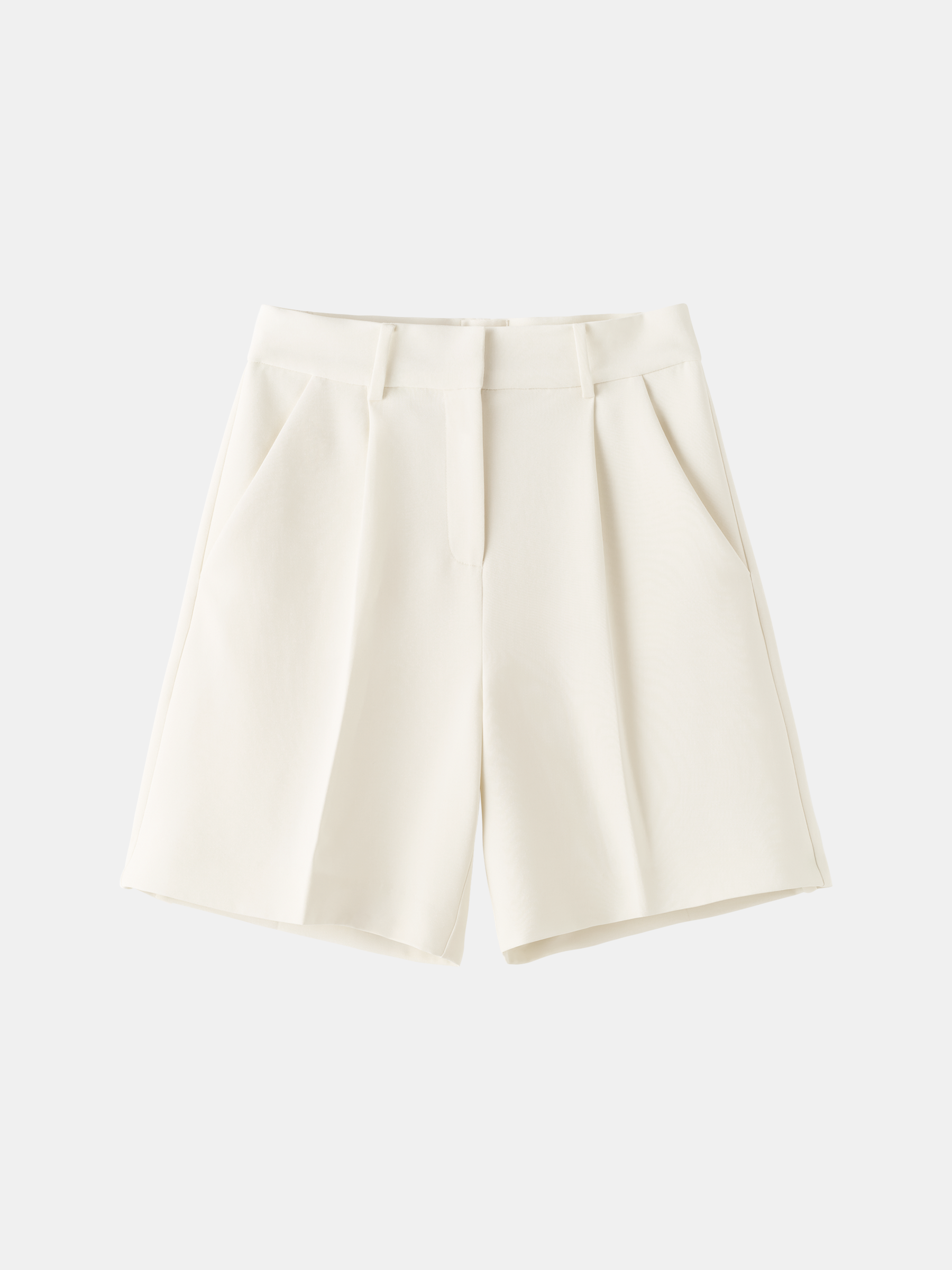 Blair Crepe Shorts are crafted from a refined crepe blend with a smooth, fluid drape. Cut to a high-rise silhouette with front pleats that add structure to the relaxed, straight fit.