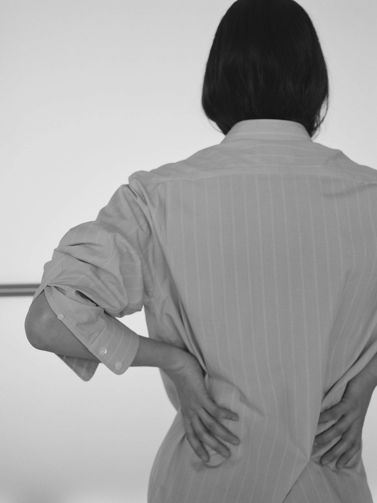 Shirt in blue striped chambray cotton with a relaxed, masculine-inspired silhouette. Designed with collar stays for structure and a horizontal bottom buttonhole for durability and precise placket alignment.