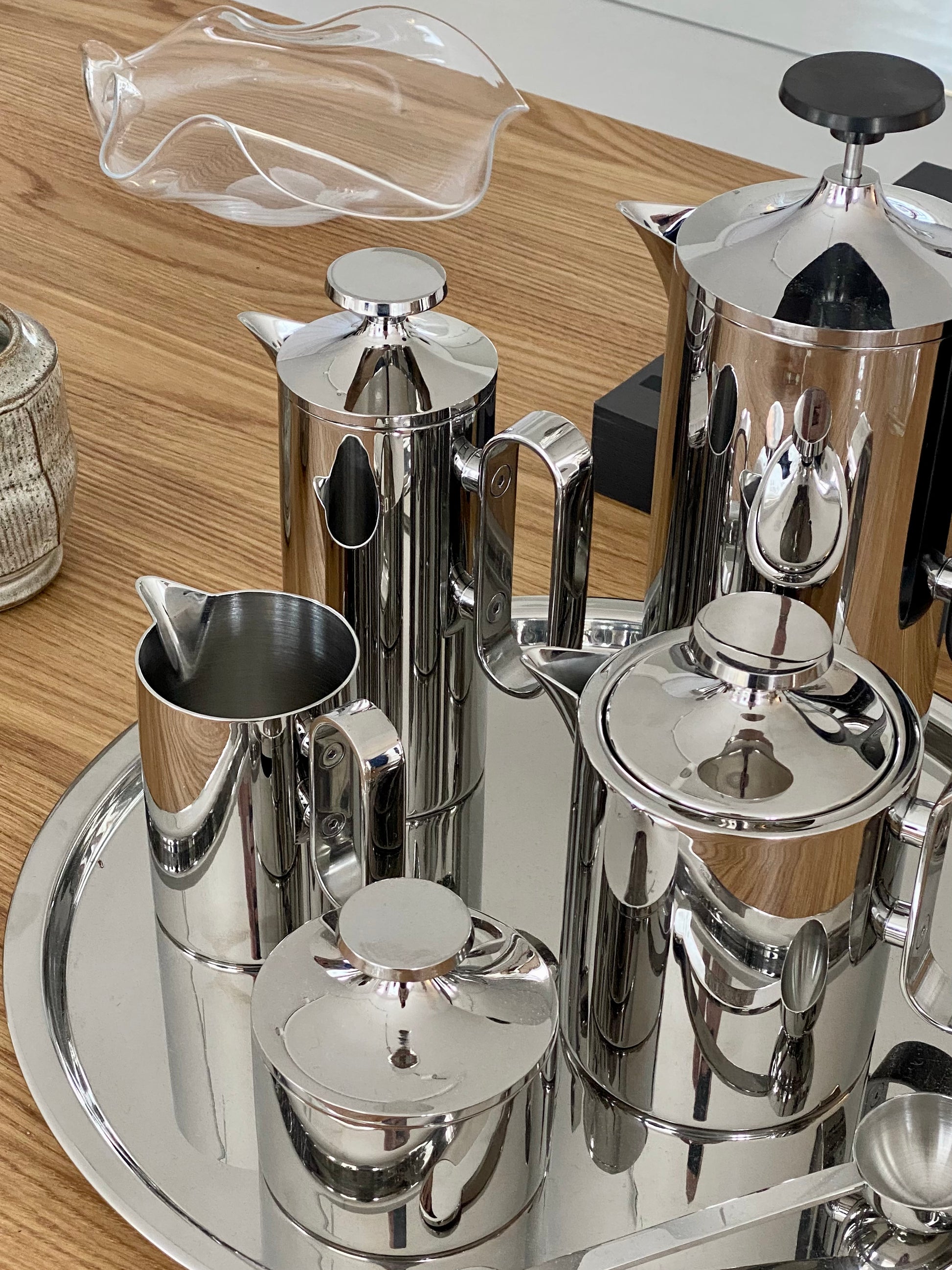 Inspired by the company's rich heritage in metalwork design, Corin Mellor has created an exquisite collection of stainless steel tableware. This cream jug, with its beautifully designed and sophisticated appearance, is a standout piece in the collection. Each item is meticulously manufactured and finished to a high polish. Alongside the cream jug, the collection features a range of functional and versatile items, including cafetières, teapots, sugar pot, toast rack, and a round tray, making it a must-have addition to any home.