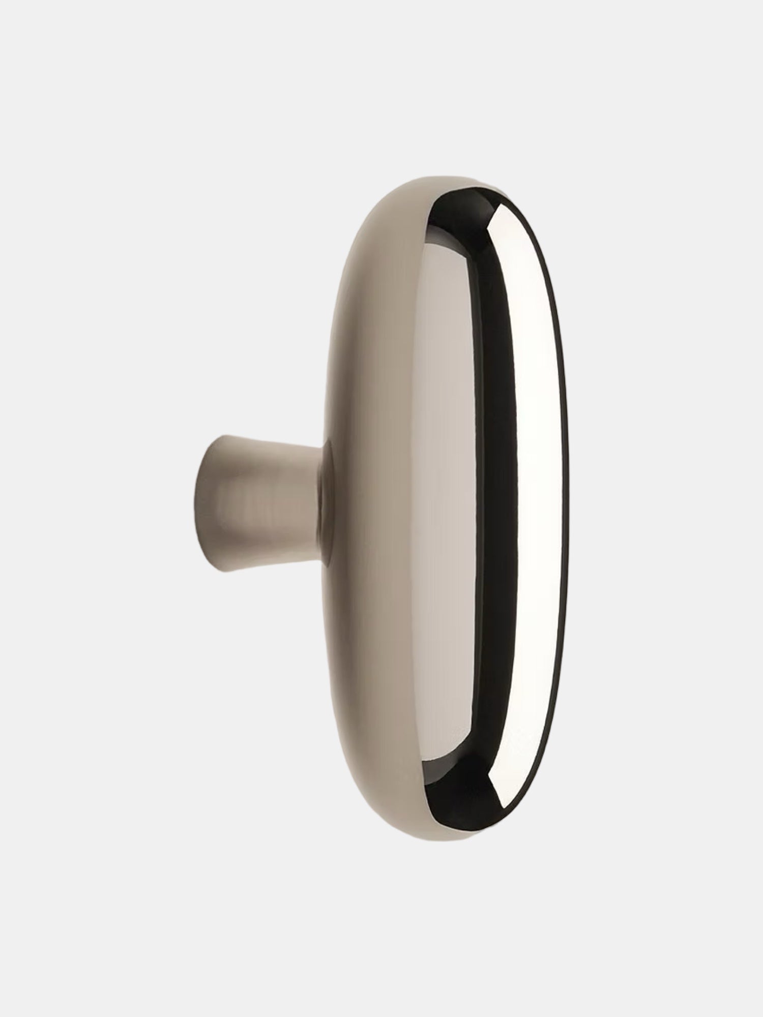 The Grande Blunt is an oversized knob, ideal for use as an appliance pull and on large drawers, cabinets, and closets. Its generous size also makes it suitable as a door pull. This piece pairs seamlessly with various sizes in the Blunt range and complements other styles perfectly, especially when a robust, substantial piece is required. The polished nickel plate features a warm tone and a smooth mirrored finish, enhancing its sophisticated appearance.