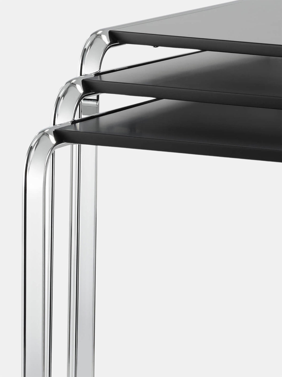 MaterialFrame: chrome plated steel "tube oblique" / Table top: wood, varnished