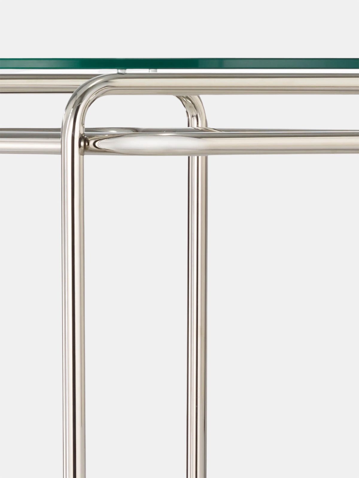 MaterialFrame: nickel plated steel tube / Top: crystal glass 10 mm thick