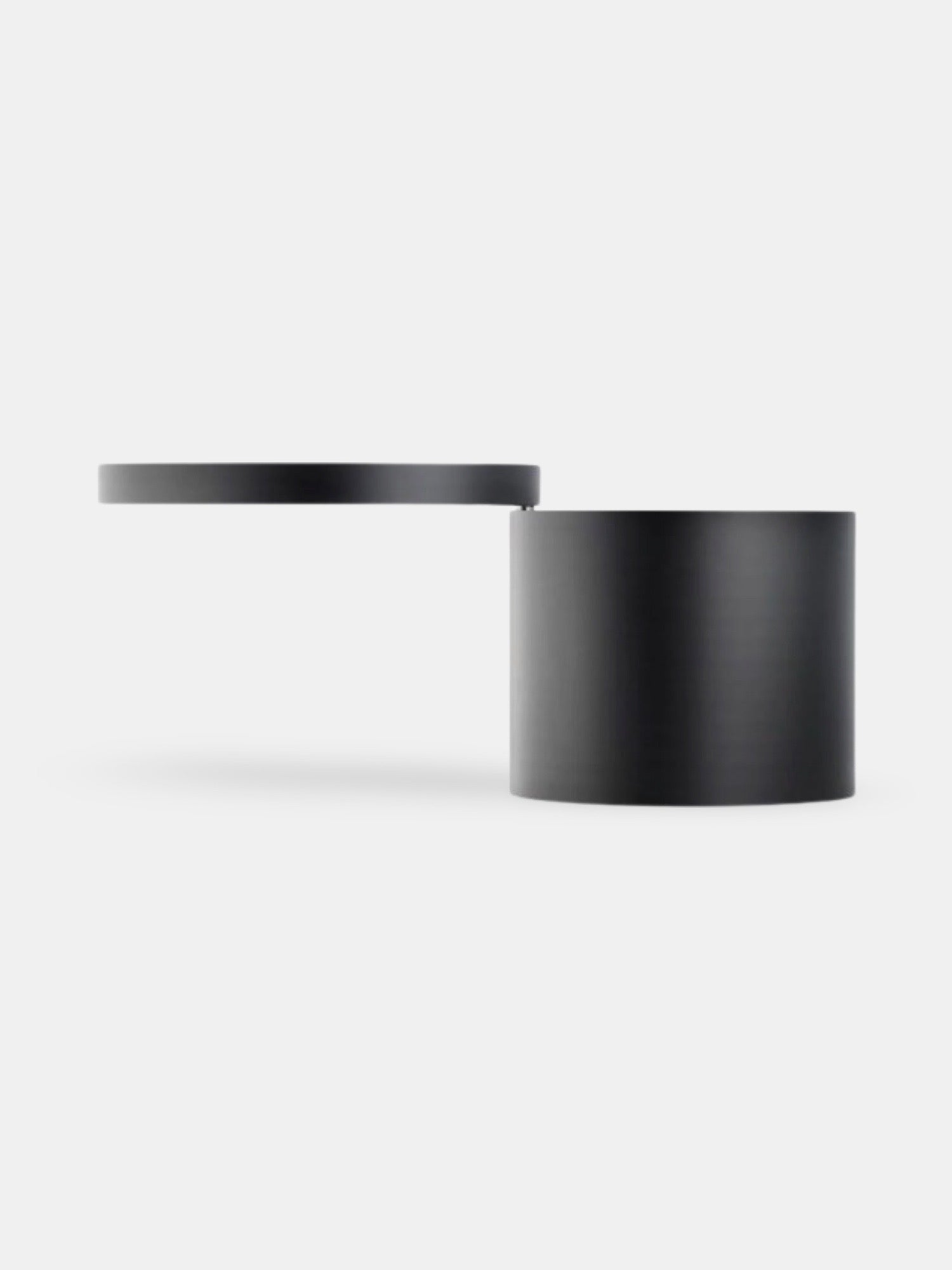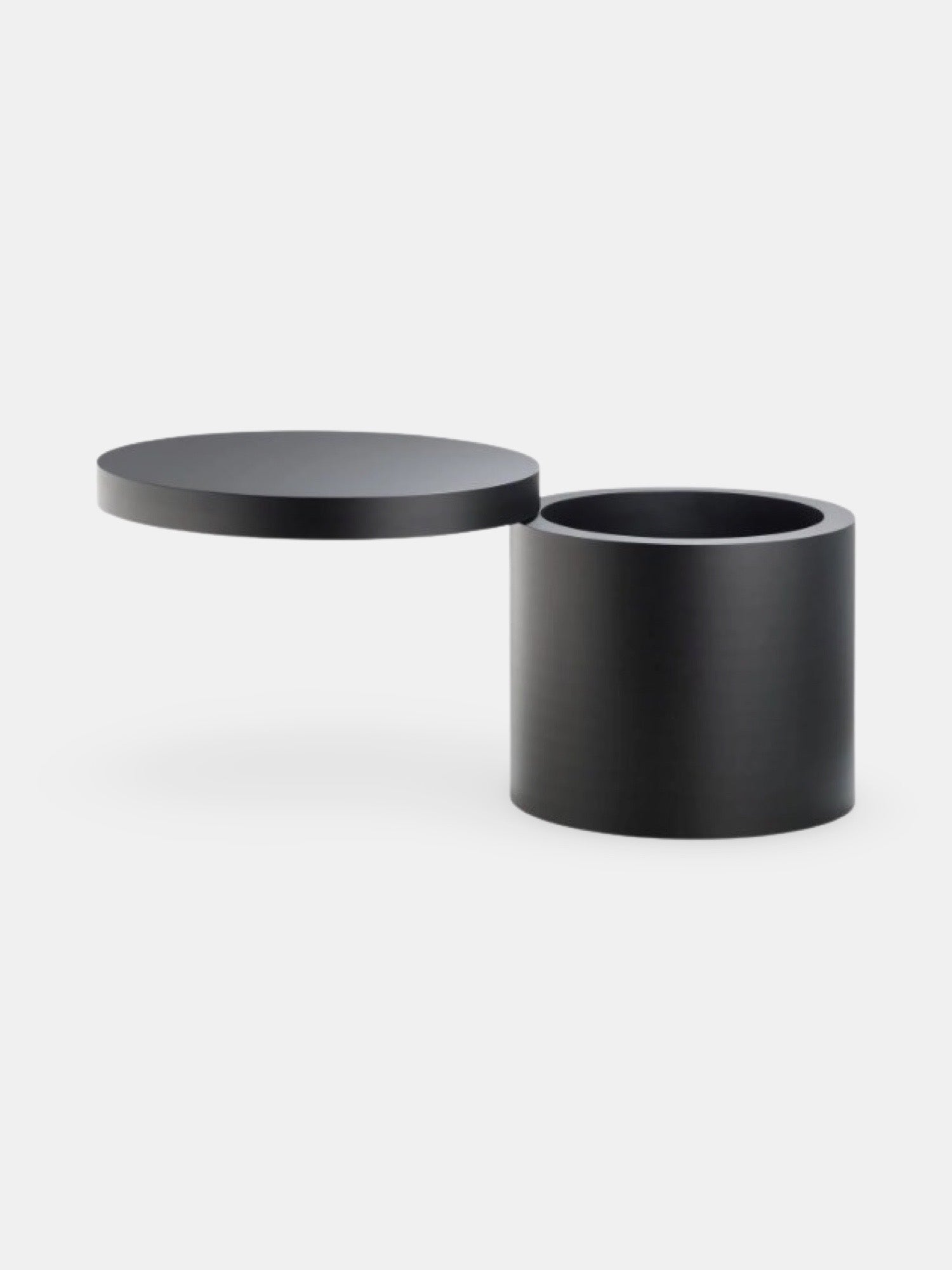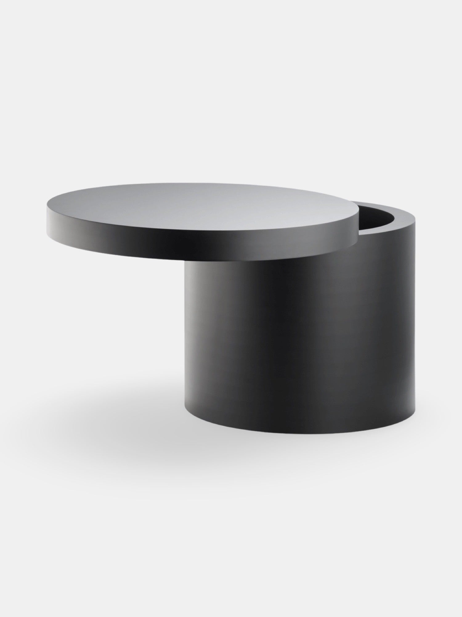 Crafted with precision and attention to detail, the K8 series features sculptural cylinders that make a bold statement in any room. Tap lightly, and the tabletop opens out seamlessly, revealing a clever storage solution inside. Wolfgang Hartauer's meticulous design incorporates black lacquered MDF rings, creating a striking structure that captivates the eye.