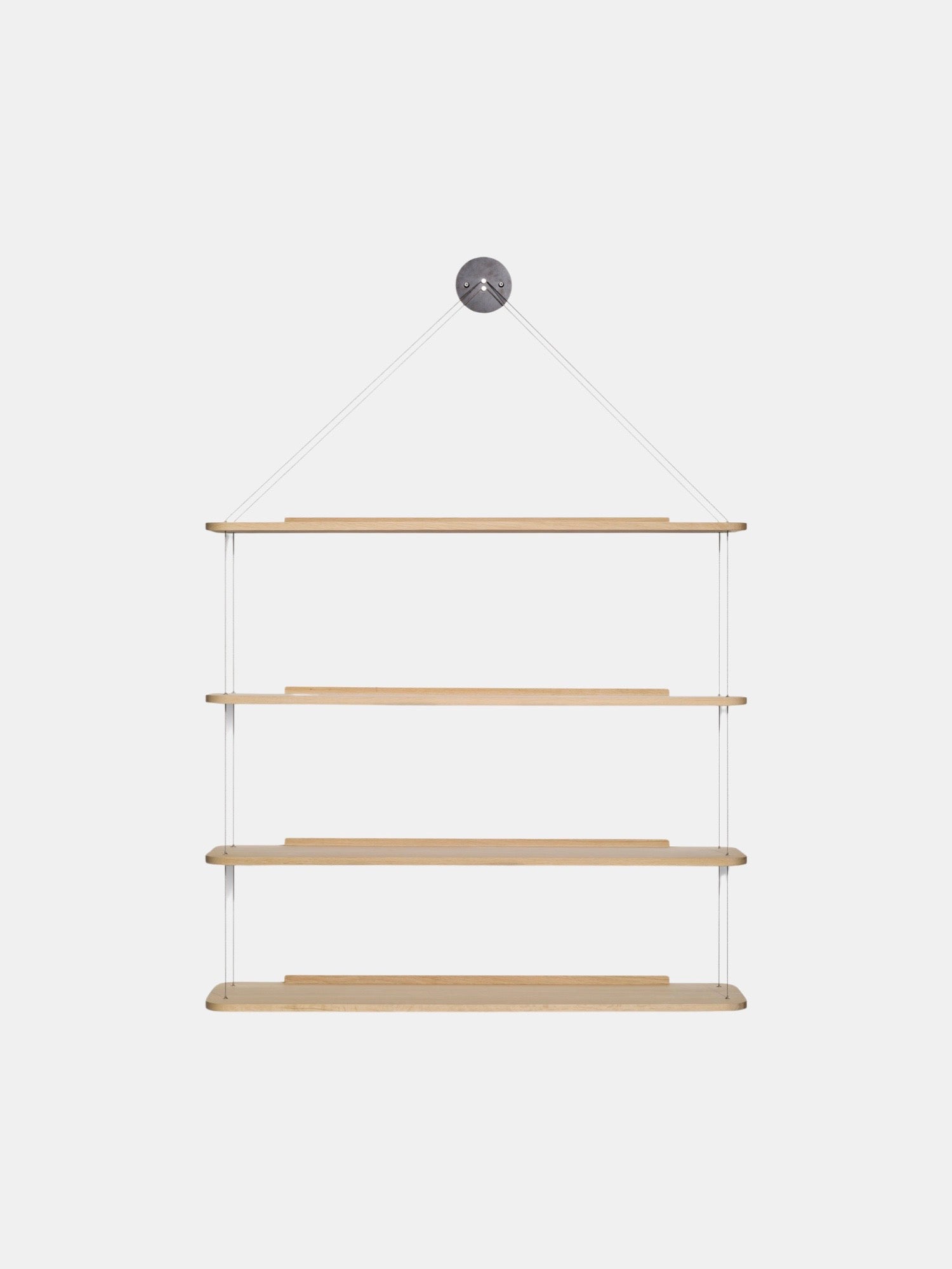Originally conceived in 1957, refined through the years, and finally brought to life by Bernini in 1966, this design by Castiglioni remains a testament to timeless ingenuity. Castiglioni's vision was to distill the essence of a bookcase to its bare essentials, leading to the ingenious decision to suspend the shelves from knots secured on two cords, anchored at a single point on the wall.