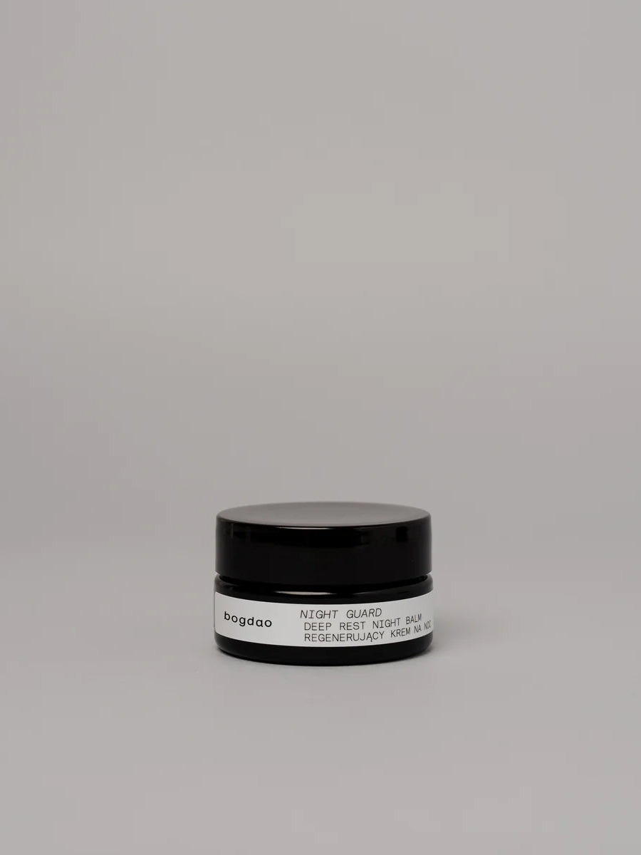 Night Guard is a nourishing cream designed for evening use that deeply regenerates the skin. Its formula is rich in unique oils, including watermelon, borage, and prickly pear oil, which have nourishing and anti-wrinkle properties. The cream also contains bioactive extracts from the Kakadu plum and banksia flower, which provide the skin with a high concentration of active vitamin C and antioxidants, unifying the skin tone and giving a natural glow. In addition, it contains glycine, panthenol, and bisabolol to soothe and protect the skin. The cream has a subtle melissa oil scent, known for its relaxing effect.
