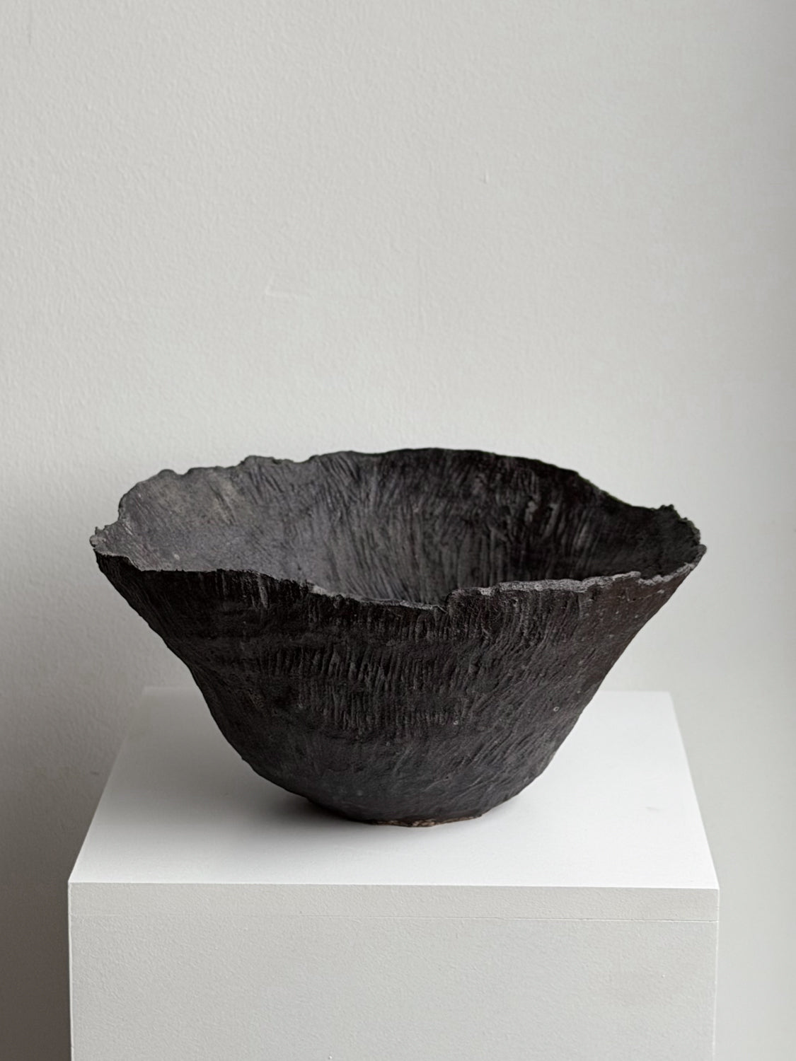 Thrown in dark stoneware, this bowl explores depth—literal and emotional.
