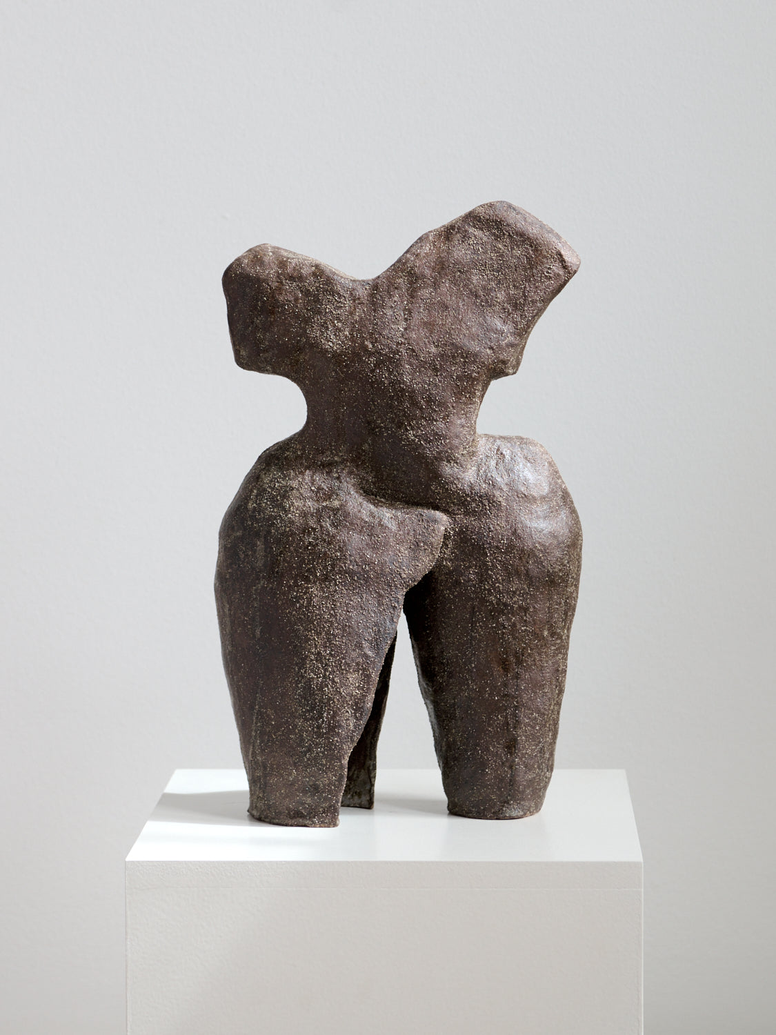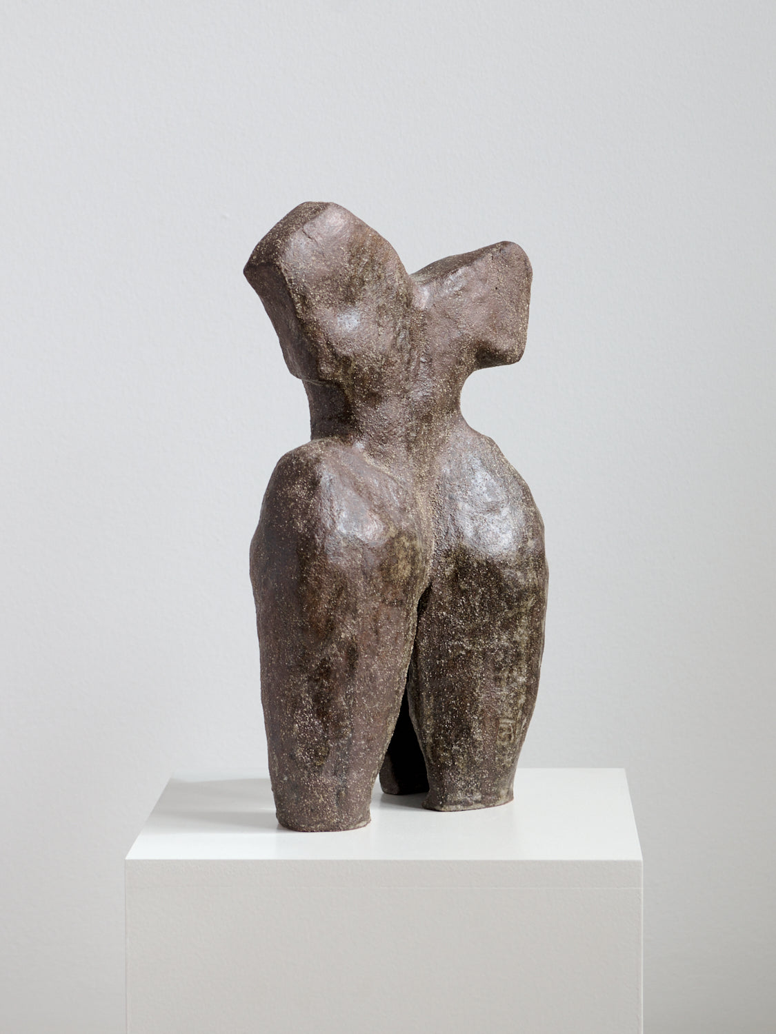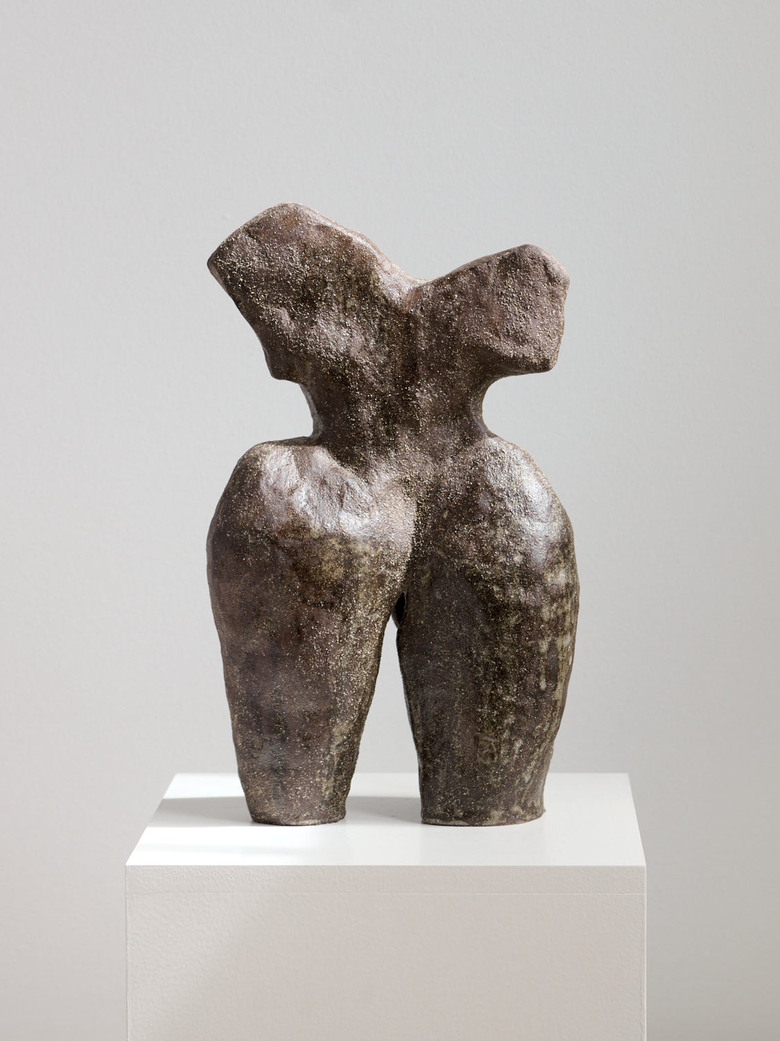 A powerful, upright figure with softened shoulders and a sculptural waist. Balancing elegance and strength, the piece evokes a sense of body and movement. Handmade sculpture by Gert Ambo. One of a kind.