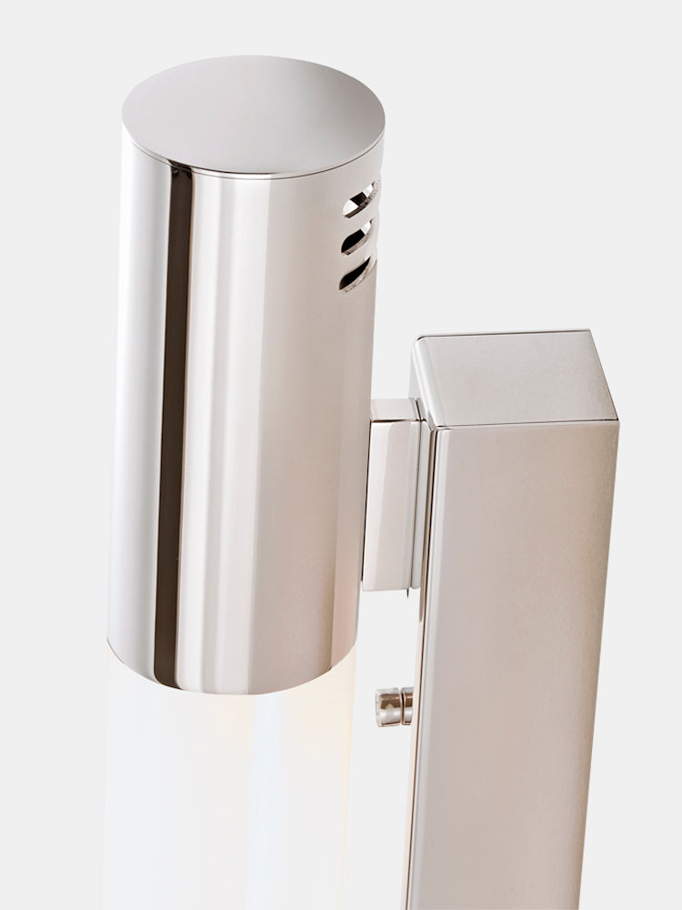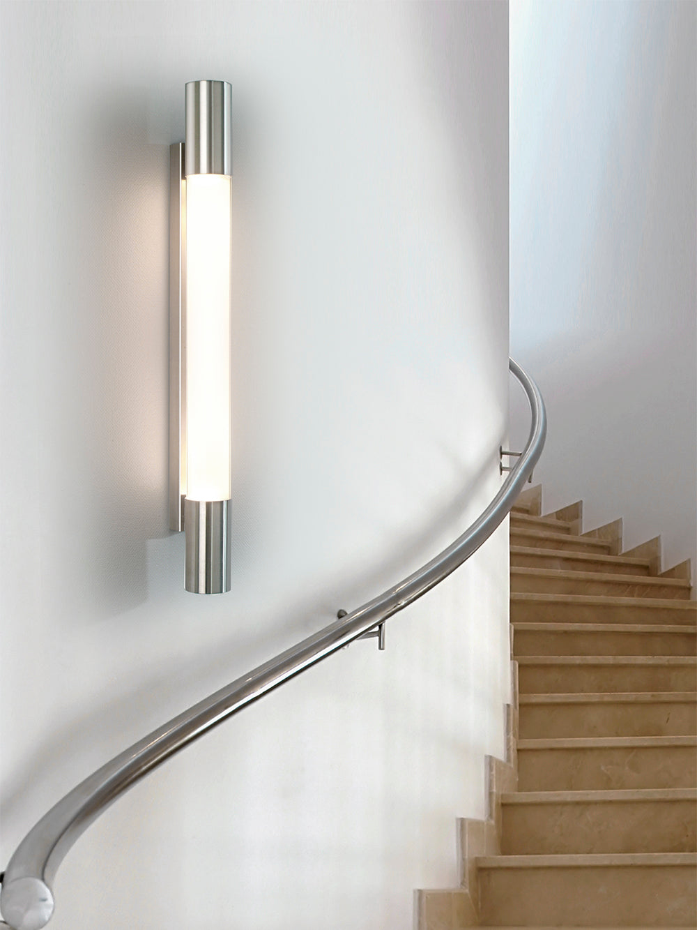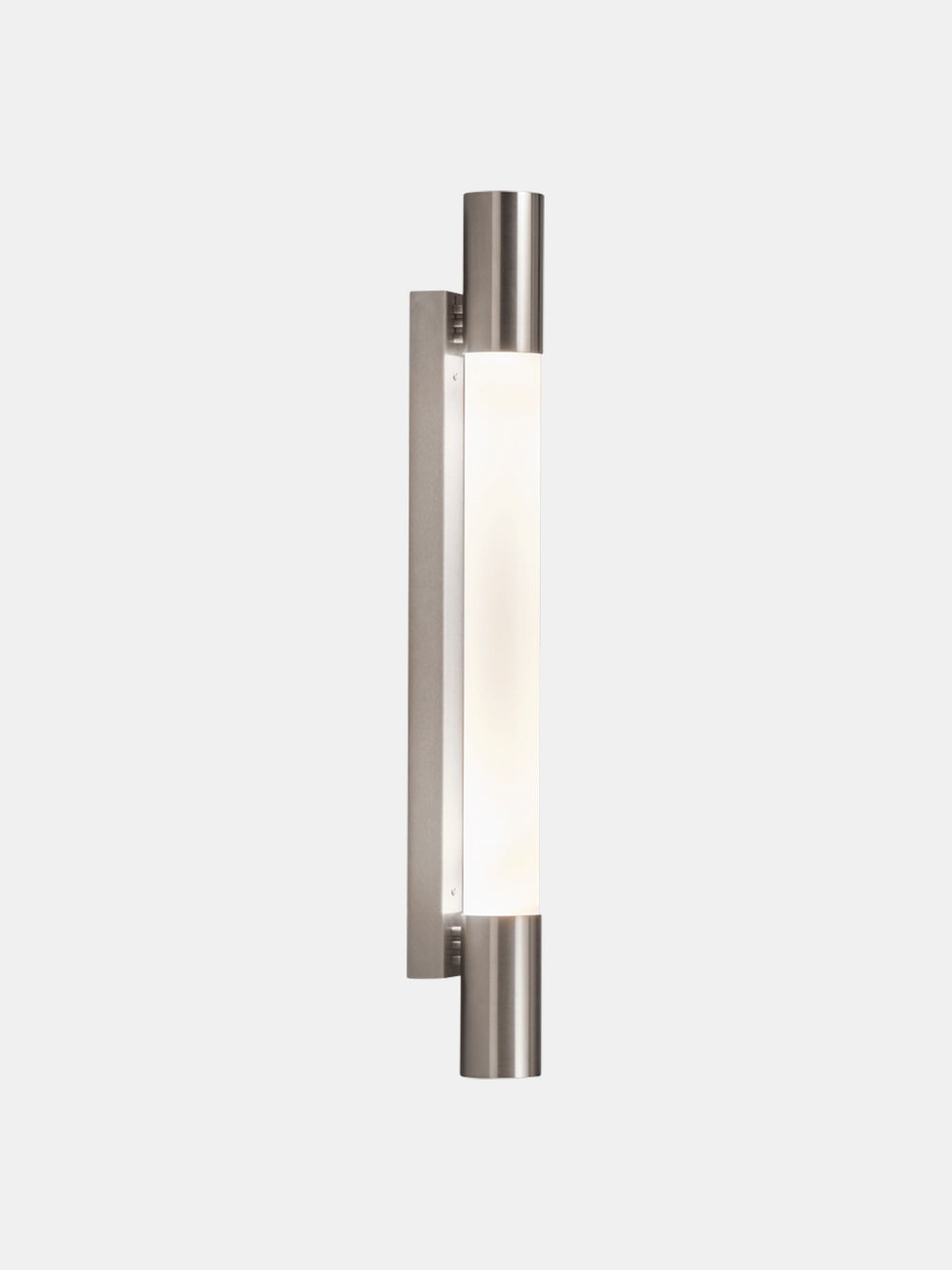 The Ariane Wall Lamp was designed by Christian Schmidt in 1991. This elegant wall lamp offers a refined solution for illuminating mirrors, staircases, and hallways. Crafted with brushed stainless steel and fitted with two matt stainless-steel cylinders at each end, the lamp exudes a contemporary aesthetic. Its unique plastic diffuser ensures an even distribution of light across a wide area, creating a welcoming ambiance.