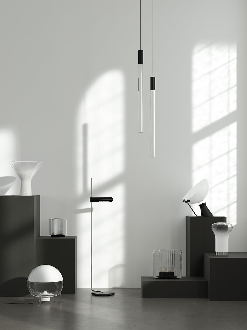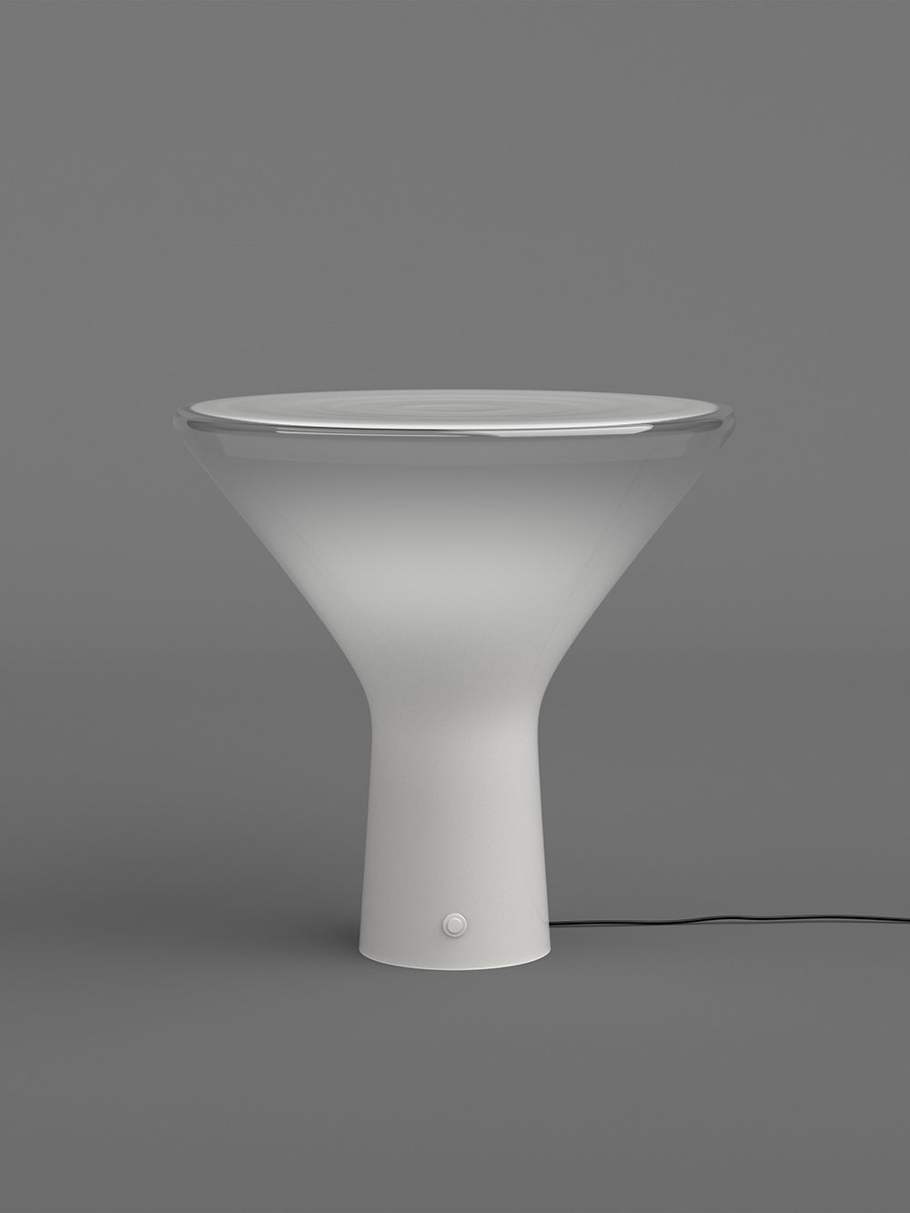 Designet i 1985 af den anerkendte italienske arkitekt, skulptør og designer Angelo Mangiarotti, udstråler Accelsa-lampen en blanding af tidløs elegance og moderne appel. Fremstillet af delikat, håndlavet venezianisk frostet hvidt glas, udsender lampens design et blødt, diffust lys, der skaber en stemningsfuld atmosfære og tilføjer ro og charme til ethvert rum.