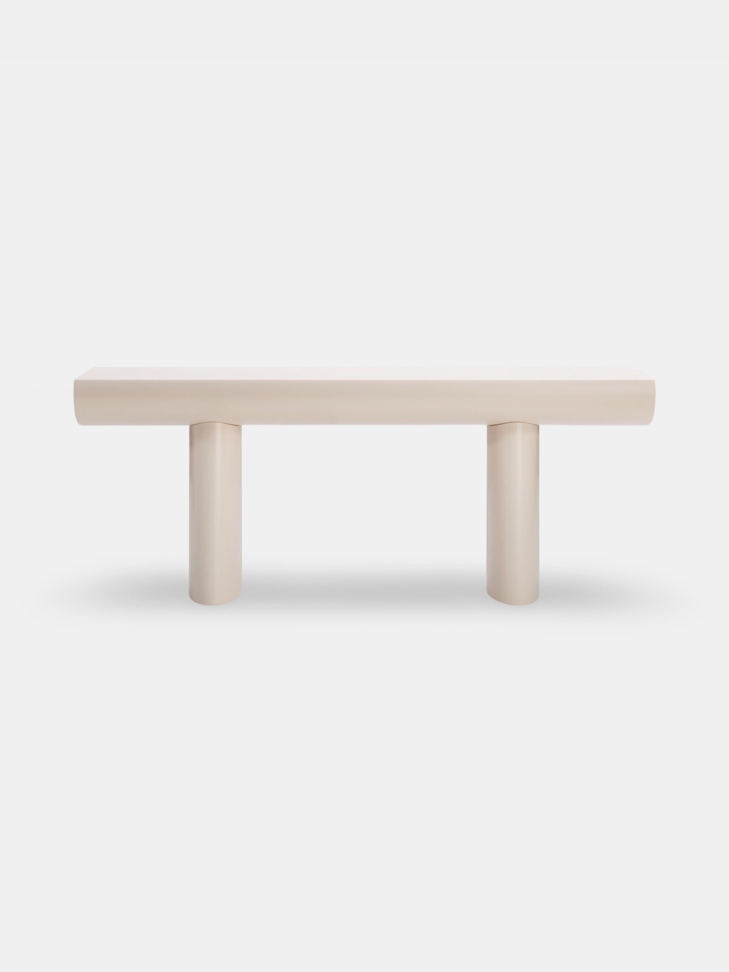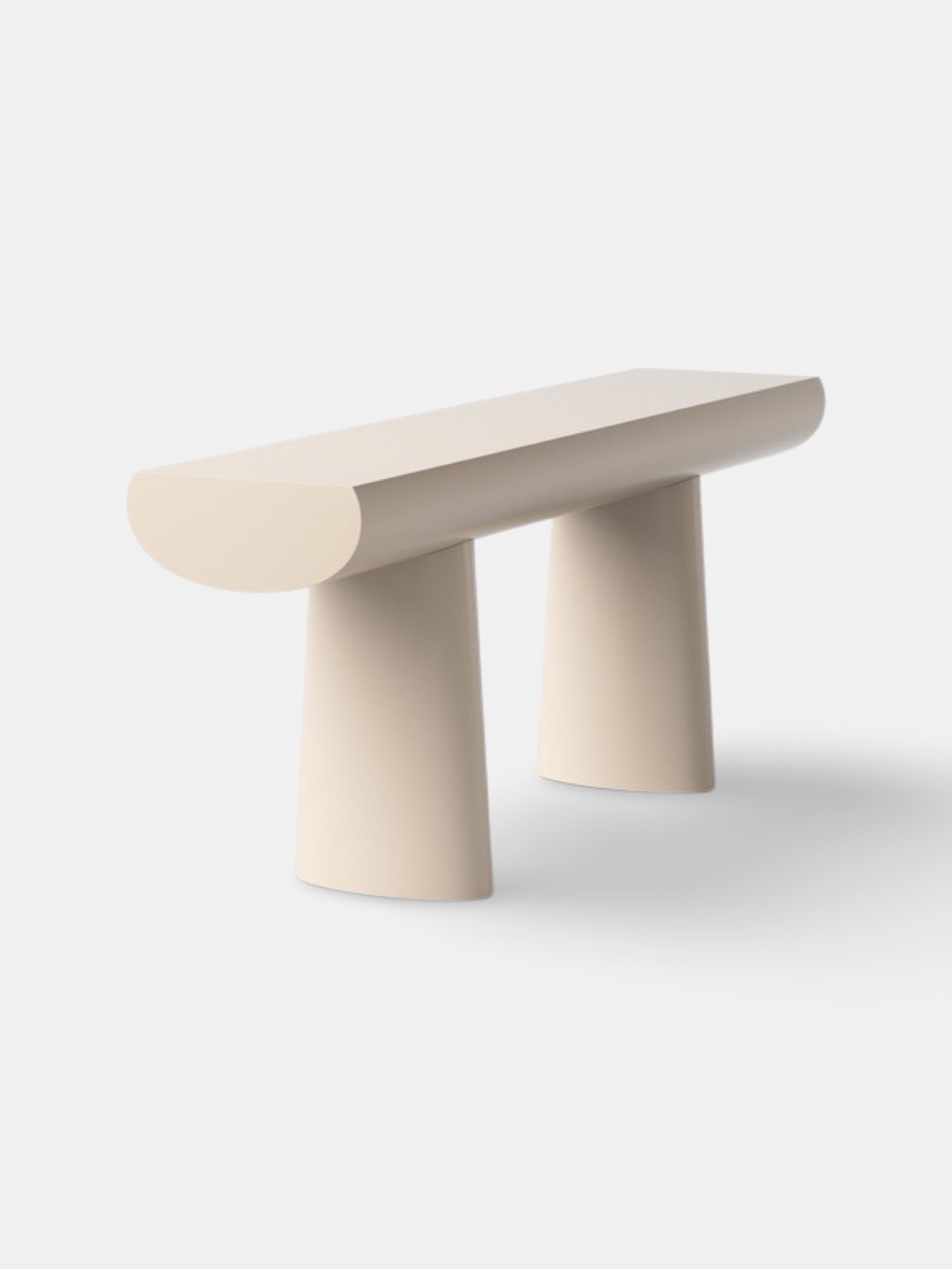 Aldo Bakkers konsolbord udvisker elegant grænserne mellem kunst og funktionelt møbel. Den indfanger essensen af et bord med sine to yndefulde søjler og en slank overflade.