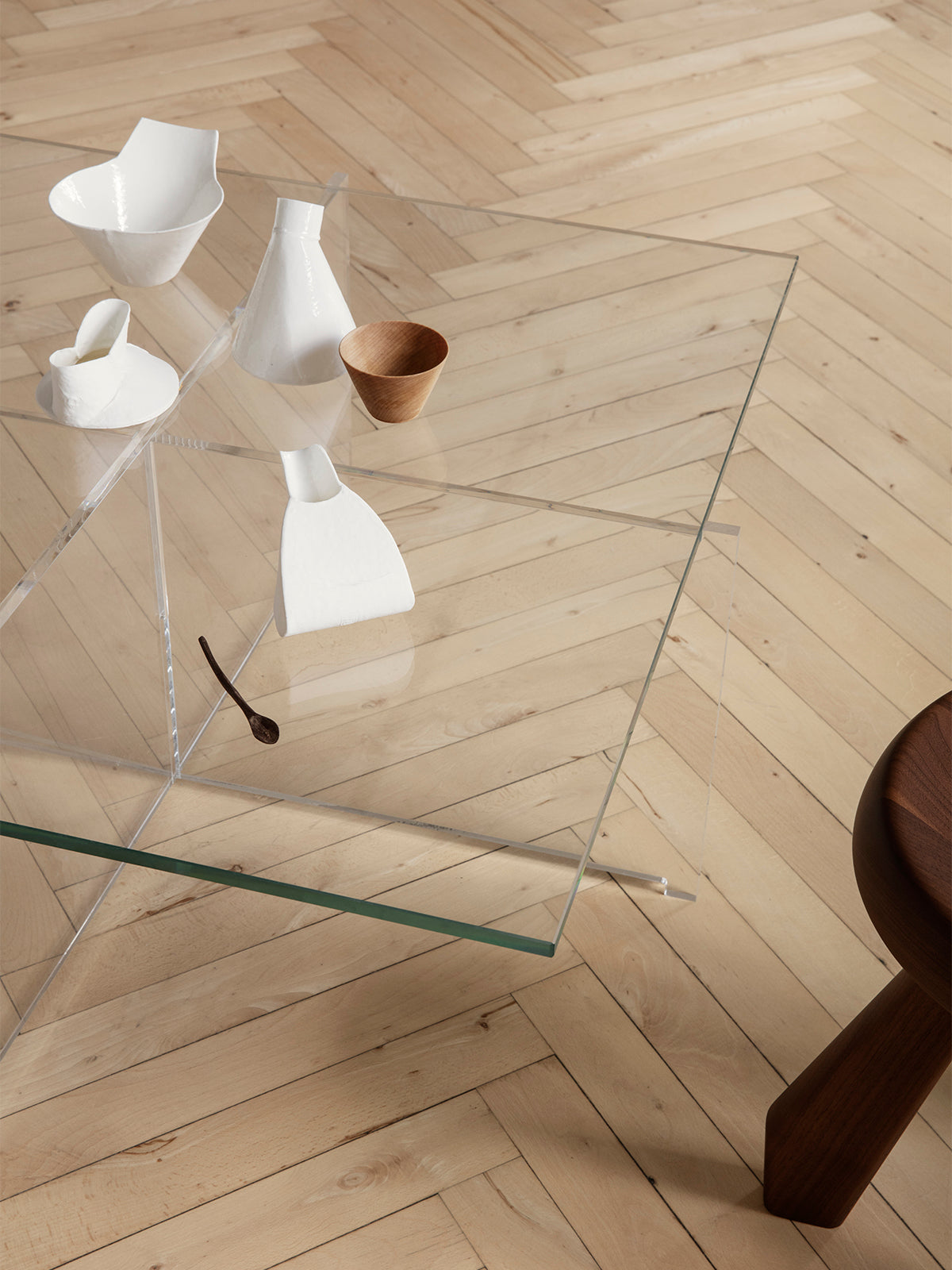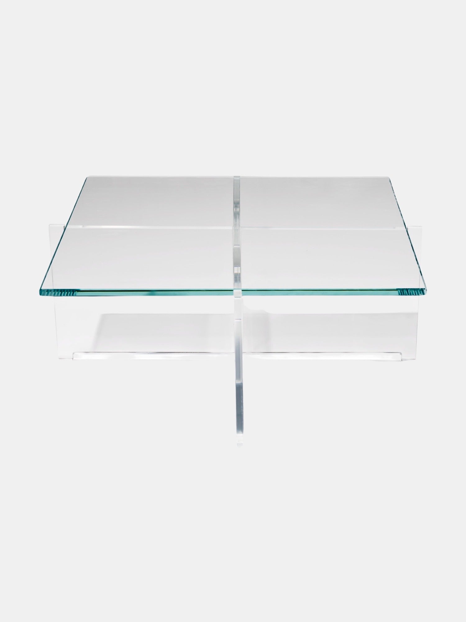 Med en krydsformet akrylbase, der stabilt understøtter en firkantet glasplade, tilfører CrossPlex bordet et let og luftigt udtryk til ethvert rum. Det tidløse design fortsætter med at tilføre moderne omgivelser en frisk følelse.