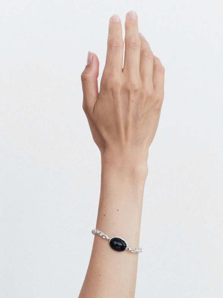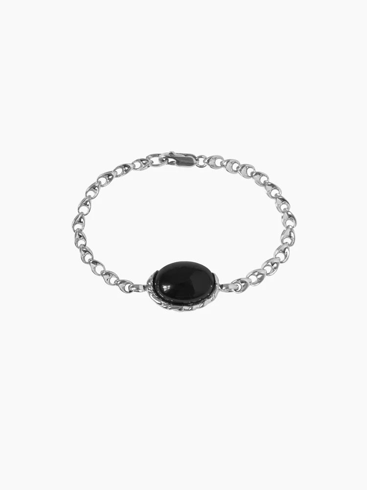 Håndlavet kædearmbånd i sterlingsølv samlet med Corlis Embleme-vedhæng bestående af en sort onyx-sten.