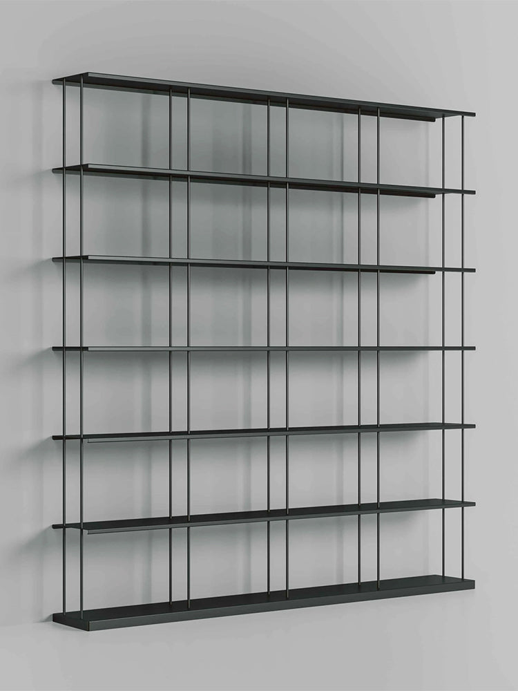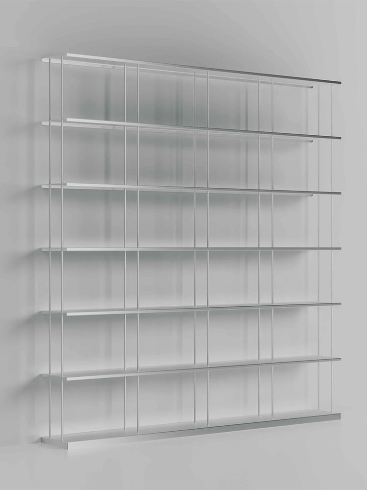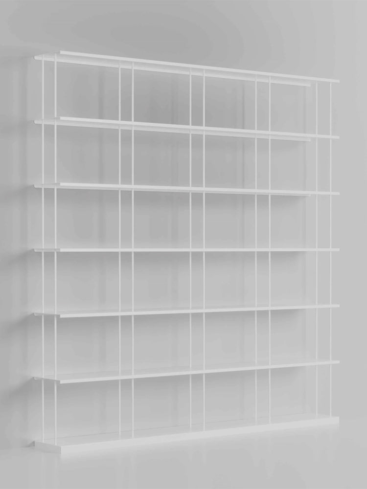 Krossing Maxi er en let og solid gulvreol, der er ideel til opbevaring og visning af større bøger eller genstande.Den er lavet af aluminium og har en gulvbase, der bærer det meste af reolens vægt. Den skal dog også fastgøres til væggen for ekstra stabilitet. Reolen fås i anodiseret aluminium, mat sort og mat hvid og kan tilpasses efter behov.