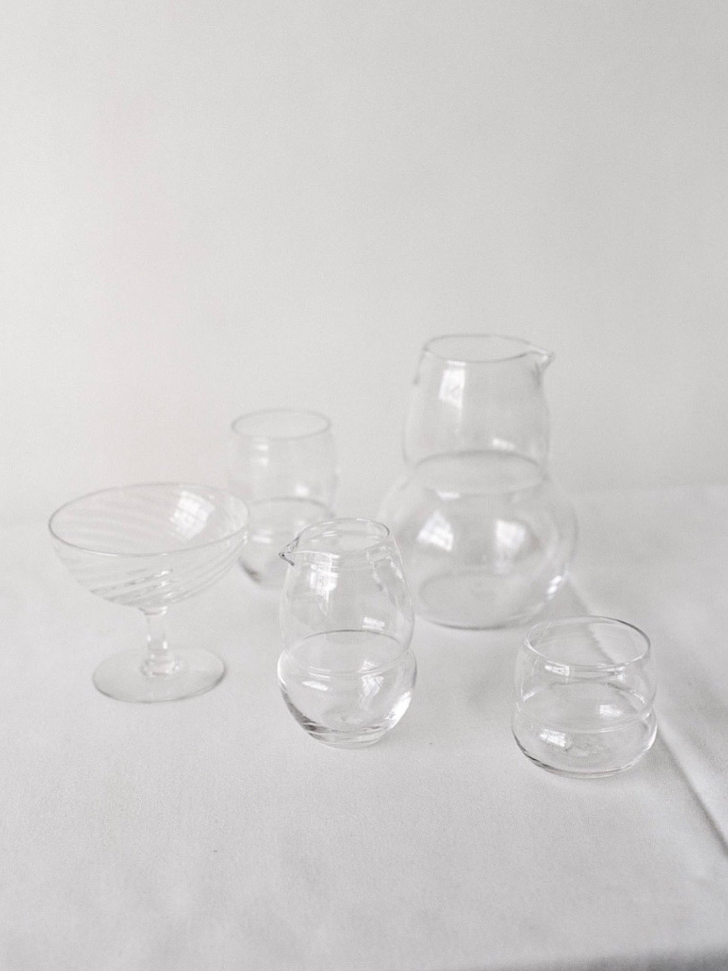 Nina Nørgaards glasdesign kombinerer elegance med enkelthed og fremviser hendes unikke æstetik. Tadaima præsenterer hendes mundblæste klare glasvarer, perfekte til at løfte ethvert bord eller hjørne i hjemmet.